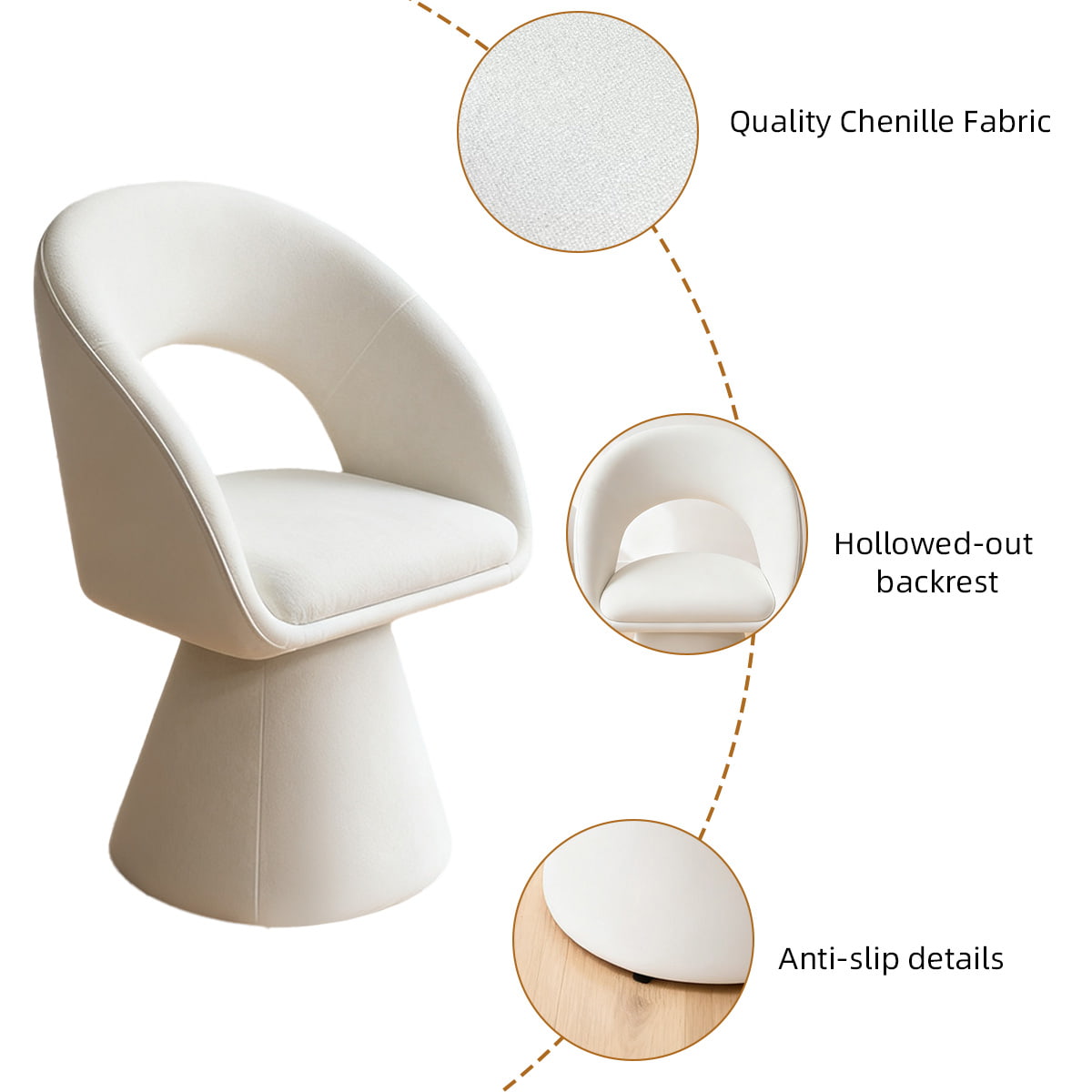Modern gebogen design draaistoel in crèmewit teddyfluweel met accent – 360° draaibare gestoffeerde eet- en vrijetijdsstoel met holle rugleuning