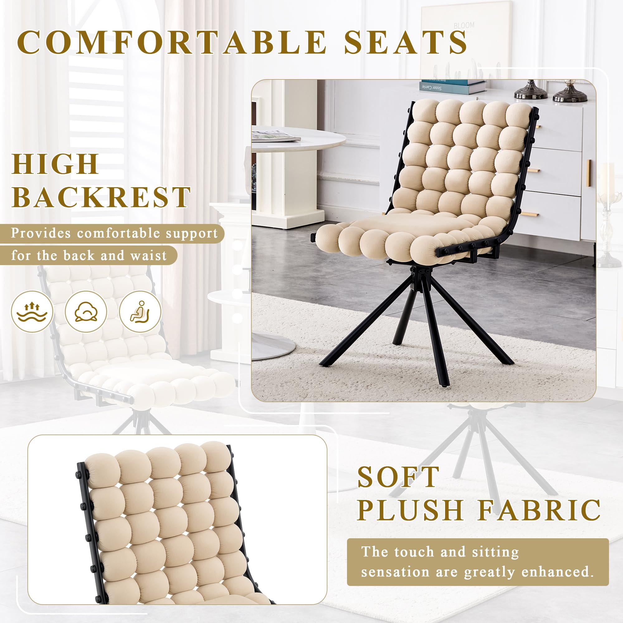 Fluwelen draaibare eetkamerstoel met bubbelkussenrug, gestoffeerde accentstoel met metalen poten (geen wielen)