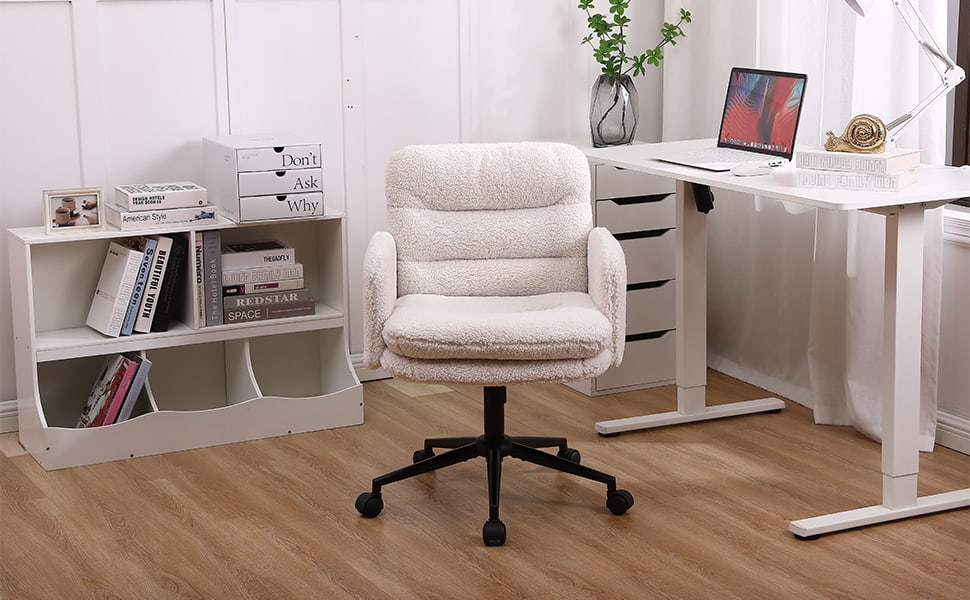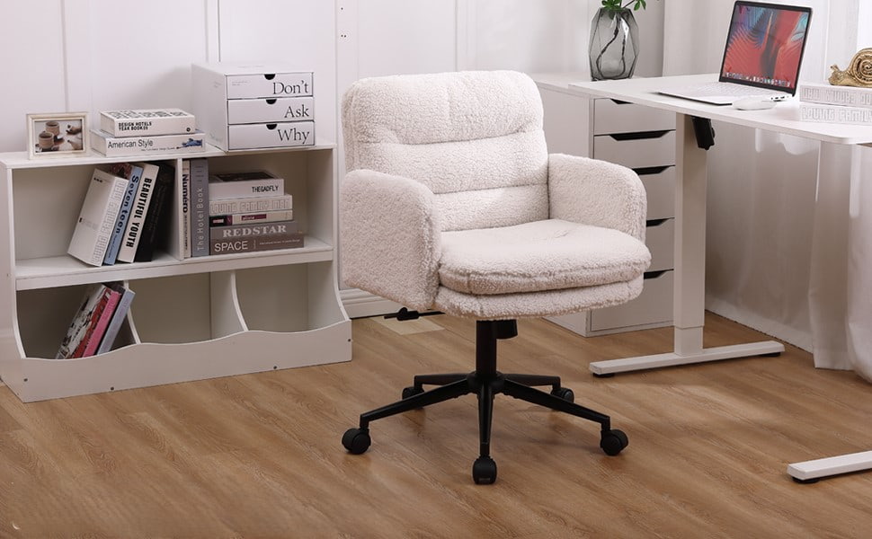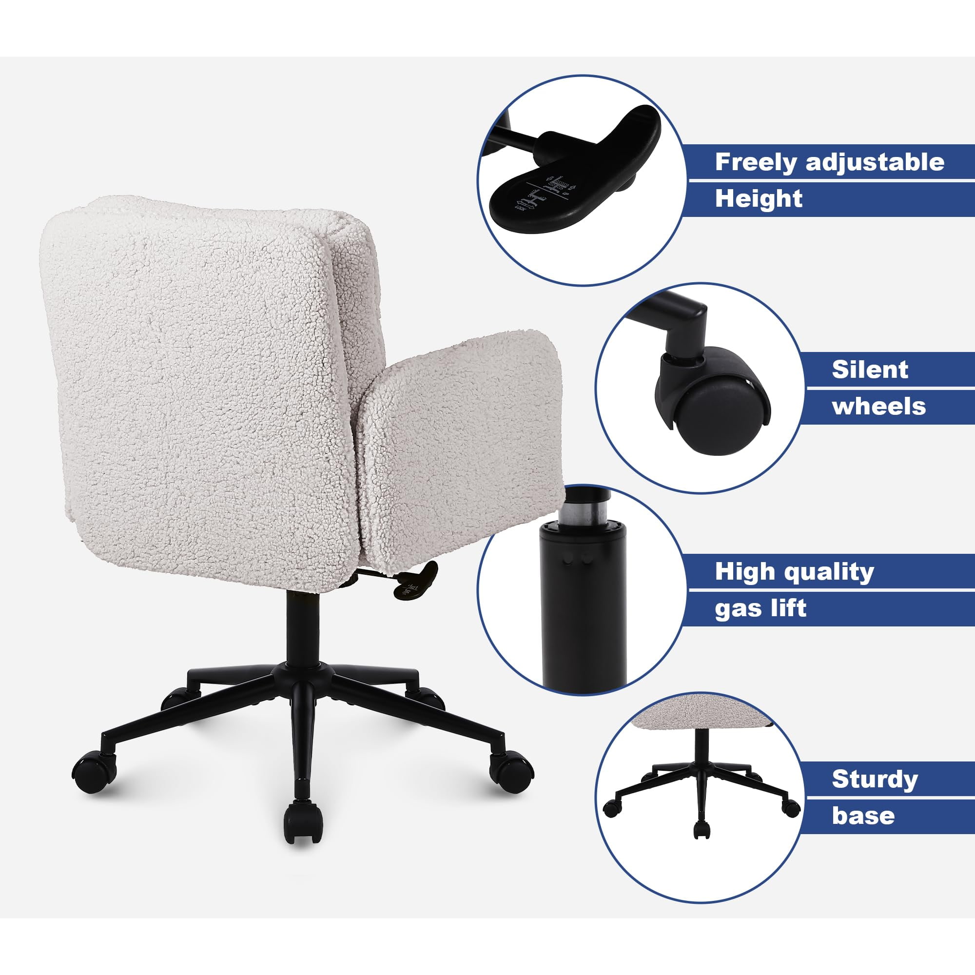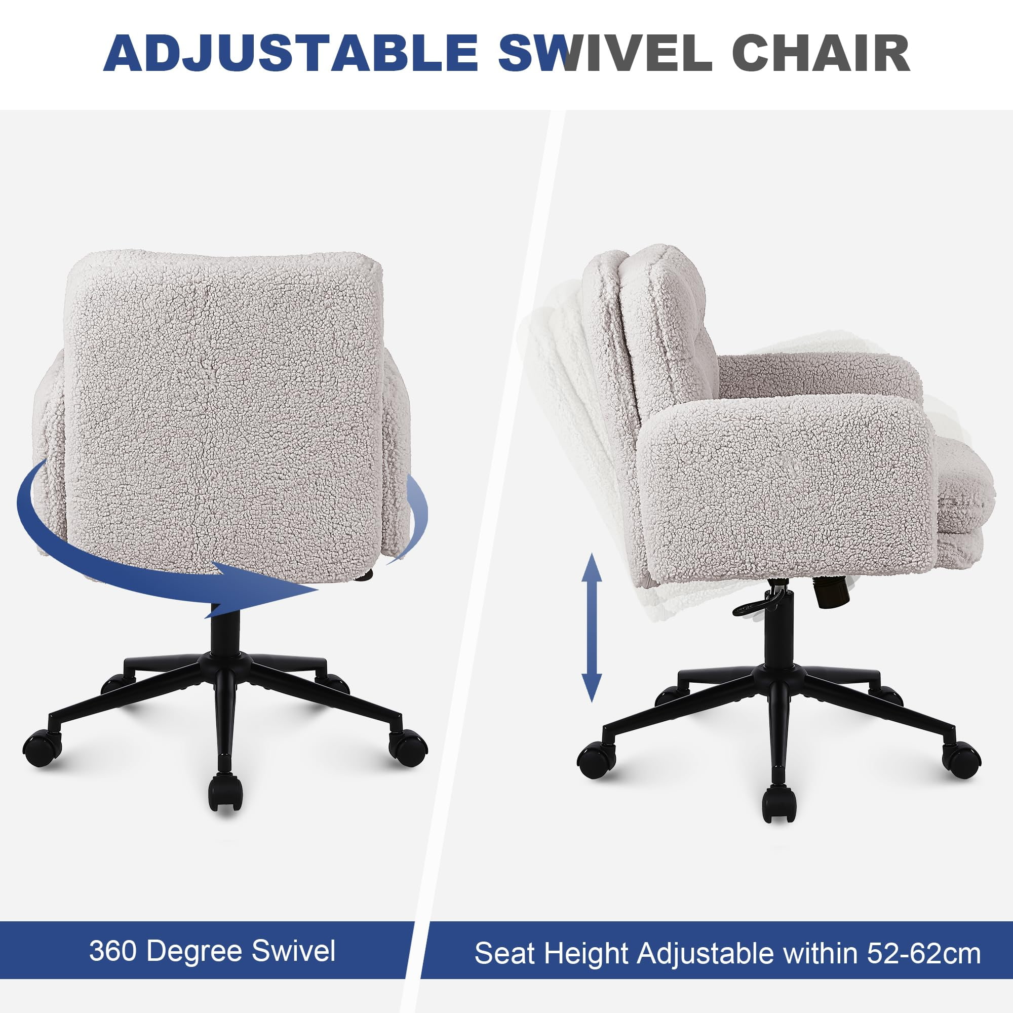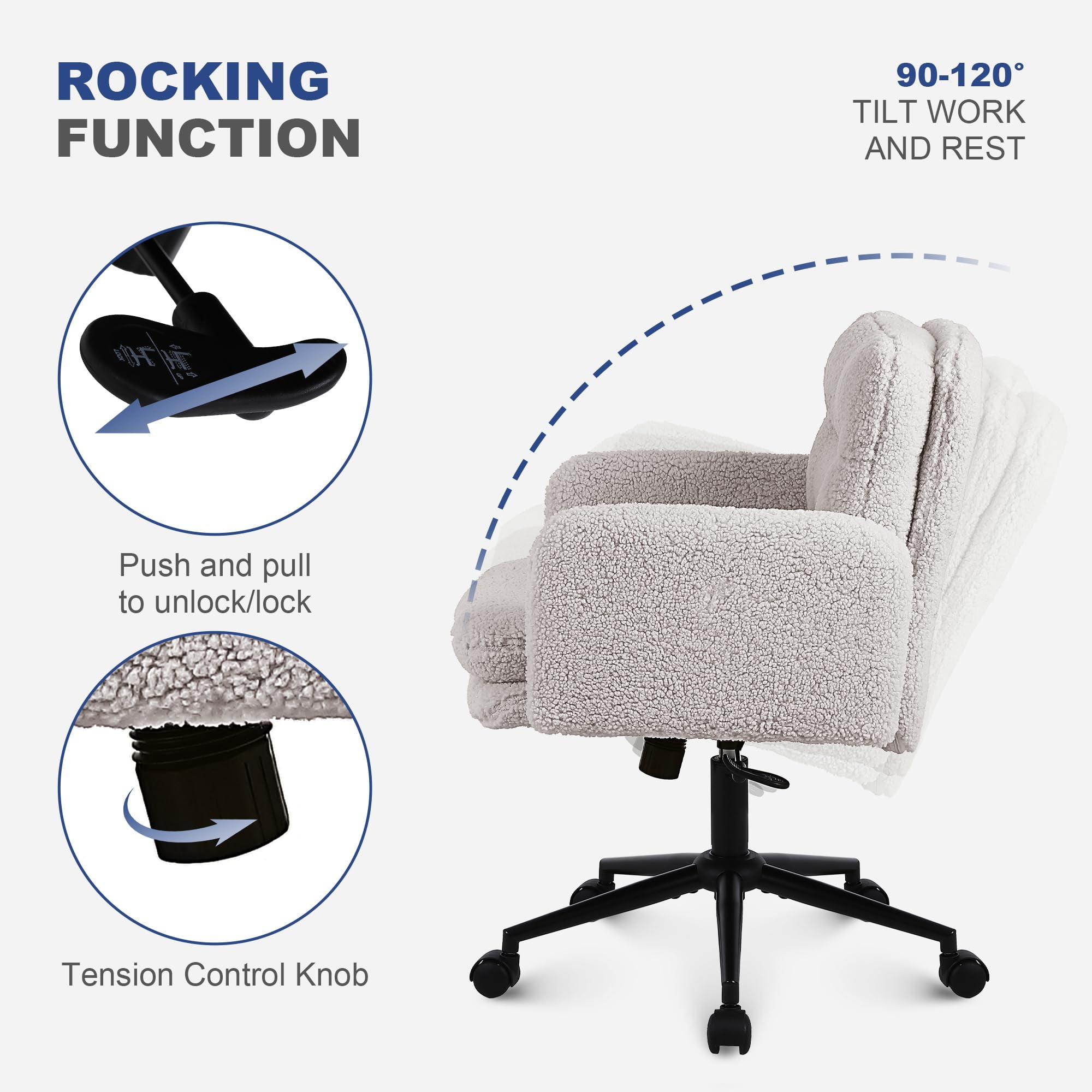 Verstelbare bureaustoel van kunstkasjmier met draai- en schommelfunctie – Zacht gestoffeerde bureaustoel voor thuis- en ijdelheidsgebruik