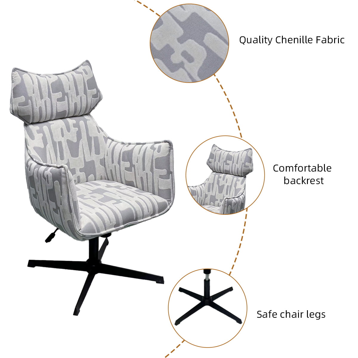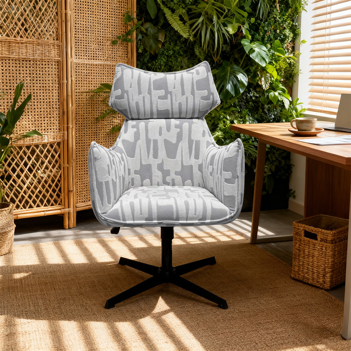 De hoge rugleuning en de ergonomische contouren ondersteunen je ruggengraat, terwijl de zachte schuimvulling zorgt voor een wolkachtig comfort tijdens lange uren lezen of ontspannen. Het eigentijdse grijze patroon en de strakke stalen poten brengen een vleugje Europees modernisme in elke ruimte, of het nu een thuiskantoor, een hotelsuite of een creatieve lounge is.