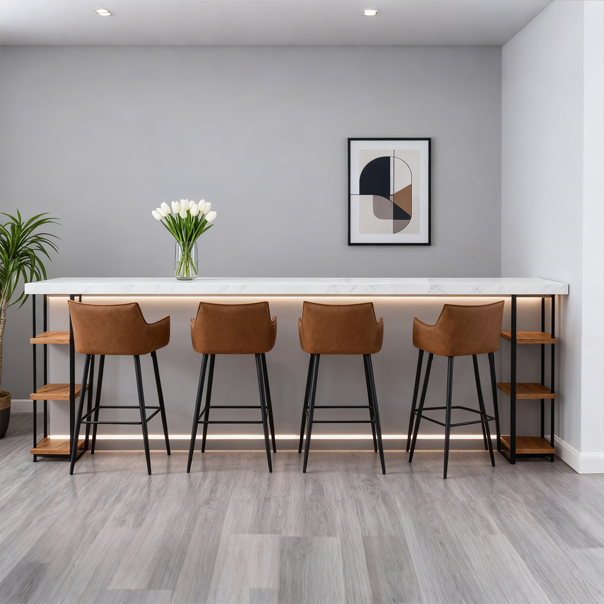 ● Modern esthetisch — Slank silhouet met warm bruin kunstleer en matzwarte poten voegen verfijnde industriële charme toe.